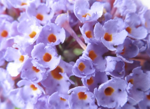 1. That’s the pollinator-magnet Buddleia, butterfly bush, in the middle. I’m not sure what the bottom photo flower is.