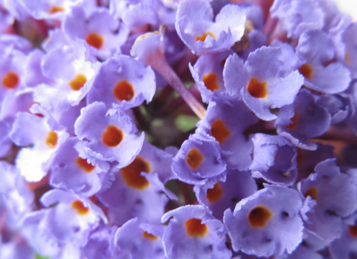 1. That’s the pollinator-magnet Buddleia, butterfly bush, in the middle. I’m not sure what the bottom photo flower is.