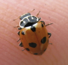 Variegated lady beetle (Hippodamia variegata), another introduced species, pictured above and below.