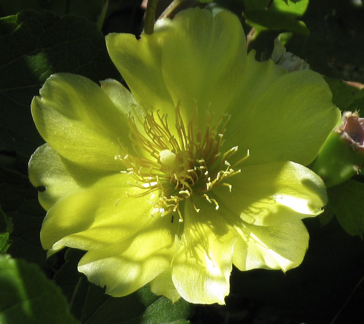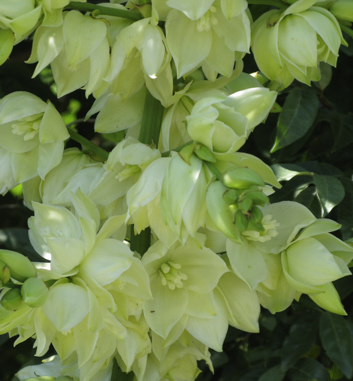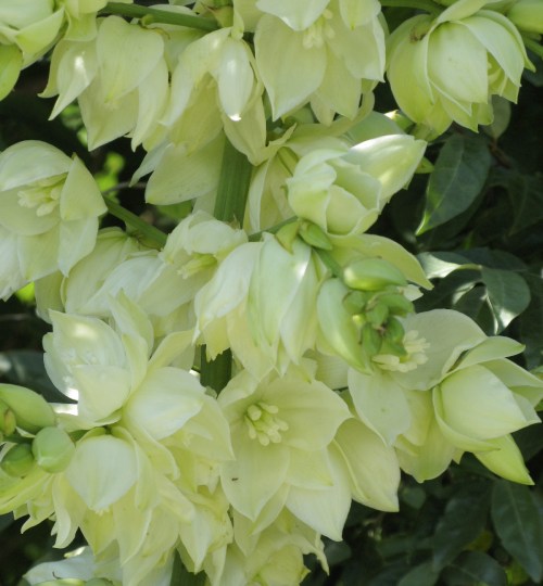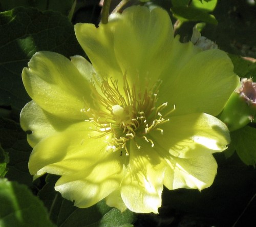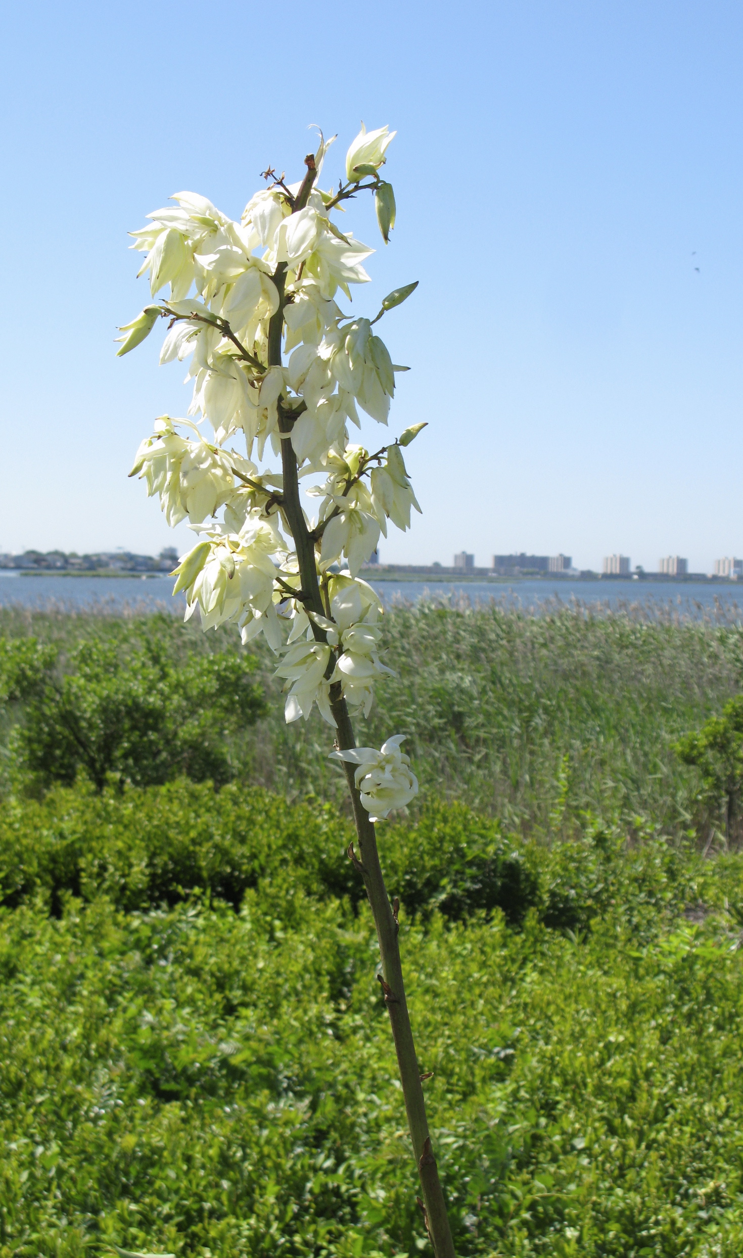 Low to the ground, too, the Prickly Pear, in bloom, and six feet off it, the Yucca filamentosa.