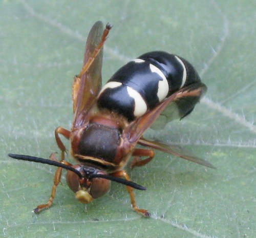 Yesterday, I heard two cicadas whining at the northern end of the Promenade. These were my first of the year. Today I heard one in the back of the apartment, way back, beyond the Back 40 Inches. On a walk through the neighborhood, I spotted a couple of the huge cicada killer wasps (Sphecius speciosus) on Joralemon Street. The one above was perching on sunflower leaves. Quite unscientific, but this date is just a day before I noted my first cicadas last year. You can read more about cicadas and their killers (actually paralyzers; it’s the larvae who eat and kill the cicadas) here.