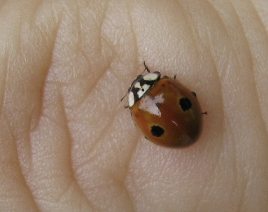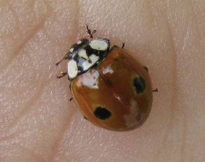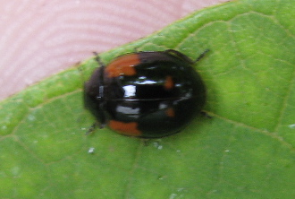 The beetle below was in the same tree. It turns out to be A. bipunctata as well, only in a dark variation, as this beetle is subject to melanic polymorphism. Lady beetles are sometimes tricky.