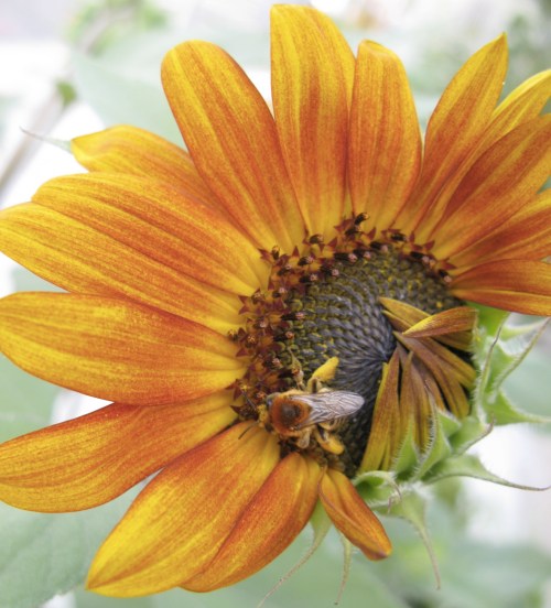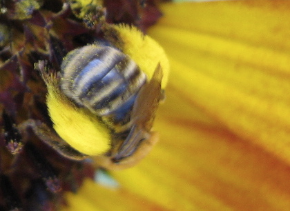 A solitary bee. There are more than a dozen species in New York. Sunflowers are one of their main food sources.