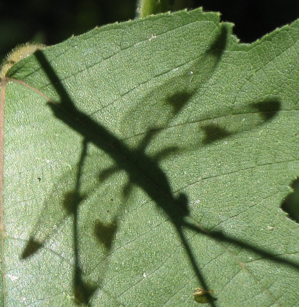 The Twelve-spotted skimmer (Libellula pulchella) is one of the easiest dragonflies to identify. You can even tell from the shadow. This is the female — the males have white patches between the dark spots.