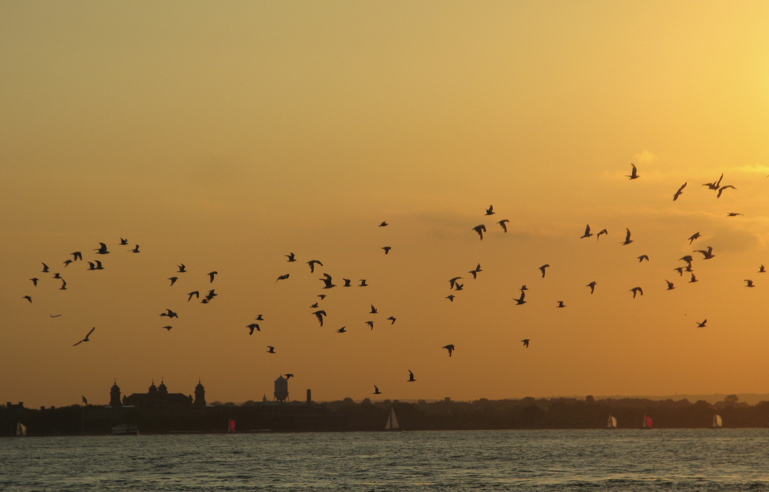 I like to think of these as a herd of giraffe, heading towards the last watering hole of the day across the harbor in New Jersey.