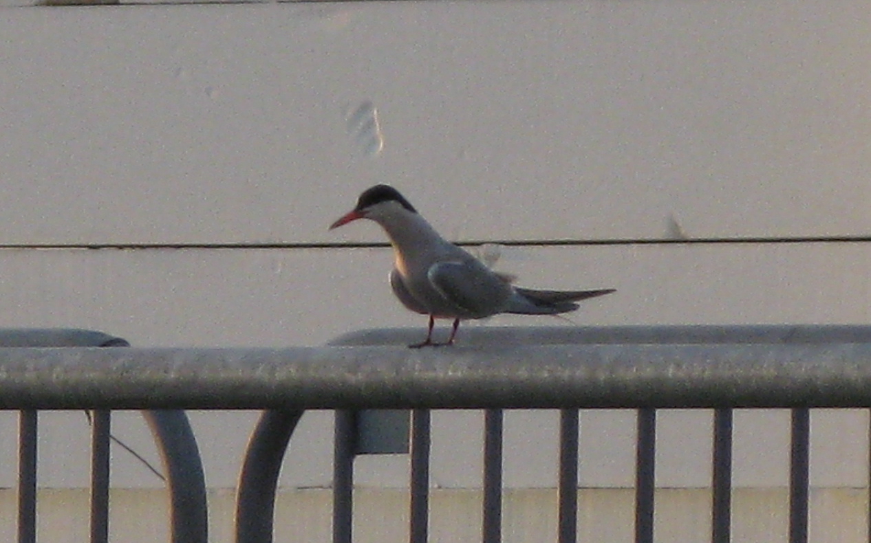 A Common tern, on the lookout for the last meal of the day. There were three or four of these, making more noise than you’d think three or four birds could. Some Barn Swallows were also darting overhead in wild loops and swirls, making smaller noises.