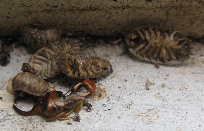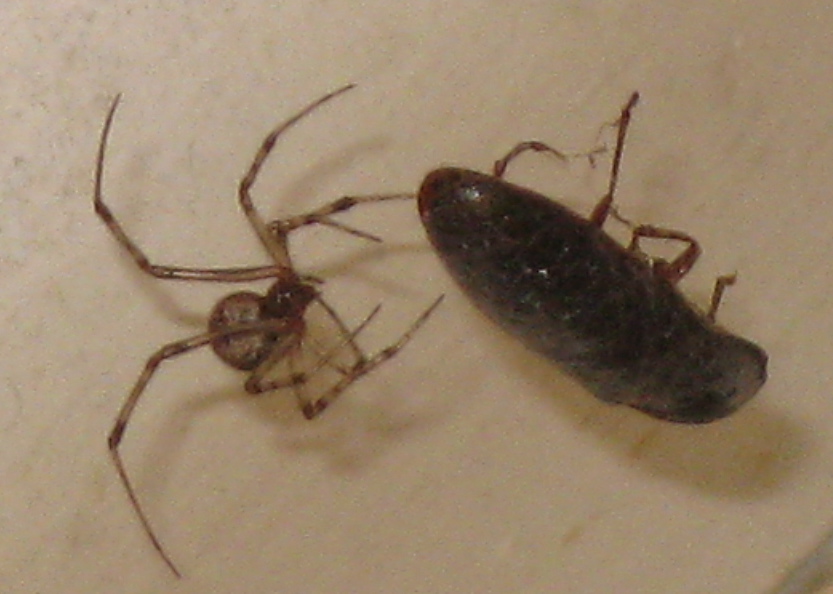 And in this corner, a click beetle, so named because they make a “click” when they flip up into the air (it helps them turn over should they find themselves belly-up) and a spider. The battle, such as it was, lasted for most of a day. I could hear the haunting click from a neighboring room. Then the spider, having won, started drinking, and that lasted for most of a day, too. And then some two days later: