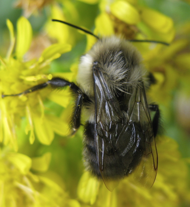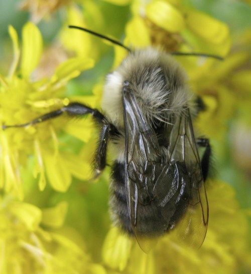 Yesterday morning around 10, it was under 60F and cloudy. The bumblebees were not quite warmed up. Some didn’t move at all, others were quite sluggish. Burly little things, with lots of muscle, which is one of the reasons they are one of the first flying bugs in the spring. They can warm themselves up by disjointing their wings and shaking themselves warm. They were flying by noon, and working the goldenrod. It was a late start to a fall day.