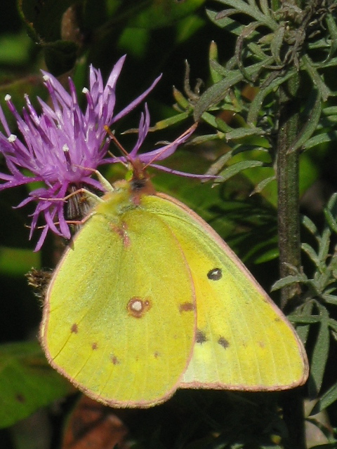 A sulphur, probably Clouded (Colias philodice).