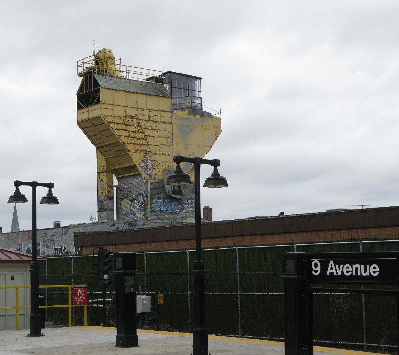 Some phragmites, and at least one, maybe two, other species have colonized this old whatever-it-is high above the D train at 9th Avenue, Sunset Park.