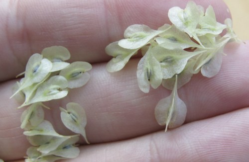 Same location. A thick patch of Japanese Knotweed (Polygonum cuspidatum) was still pendulous with thousands of three-winged achenes. This plant also reproduces by spreading rhizomes, so it’s got a couple of ways of taking over. While a torment to many (botanists, gardeners, farmers, etc.), knotweed does have one redeeming virtue: its flowers produce nectar that makes for a very tasty honey.