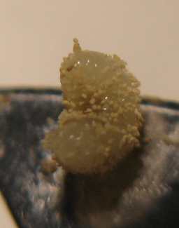 A tiny egg-shaped structure was inside the cavity within. You can see where the plant ends and the animal begins. And inside of this eggy cocoon, the larva: