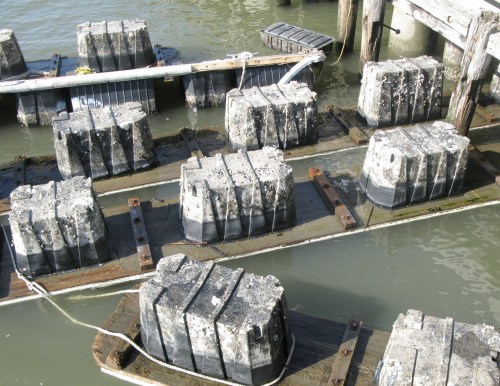 These pontoon-like things were flipped over between Piers 5 & 6 recently, revealing the: