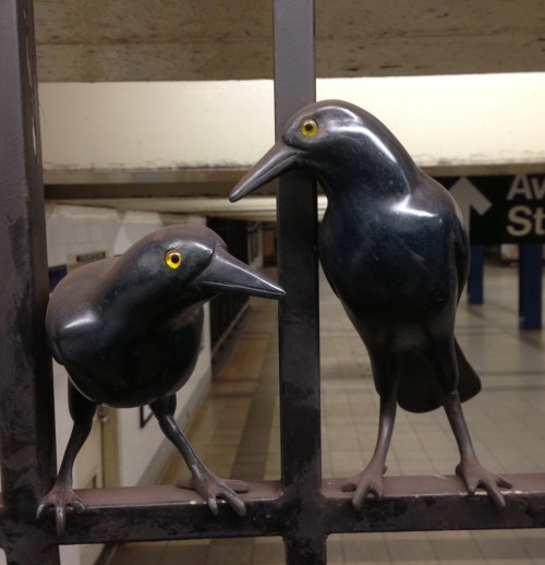 I’ve always loved the bronze birds in the Canal Street A/C/E station. “A Gathering” was created by Walter Martin and Paloma Muñoz.