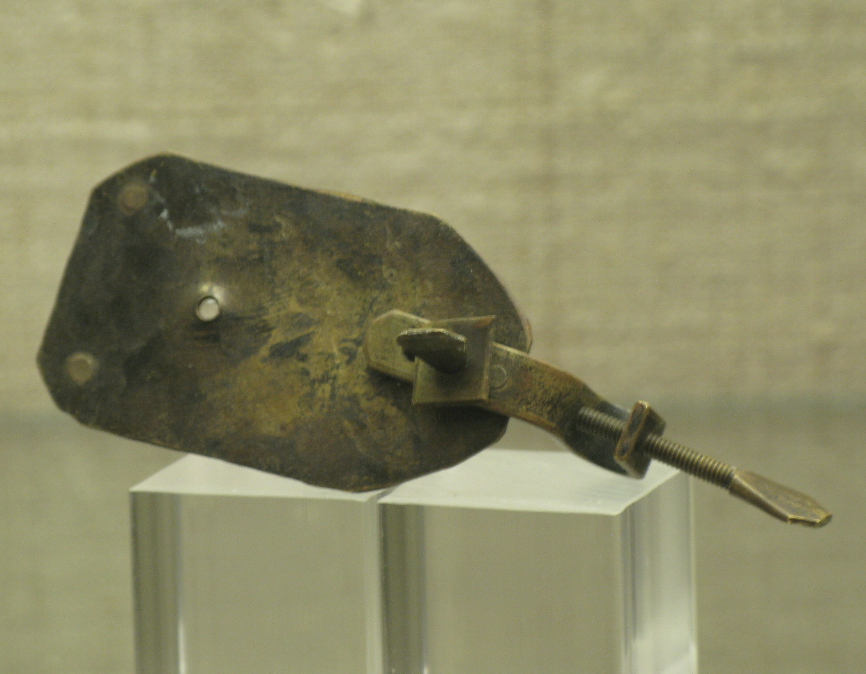 This is a model of van Leeuwenhoek’s microscope, circa 1670. It is a few inches long and opened up a whole new microworld for humans, including the somewhat staggering activity found in ol’ Antonie’s own sperm (ah, science!). I found this model at the Grolier Club not so long ago.