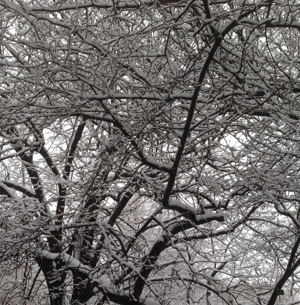 The snow seems to outline the bones of the trees.
