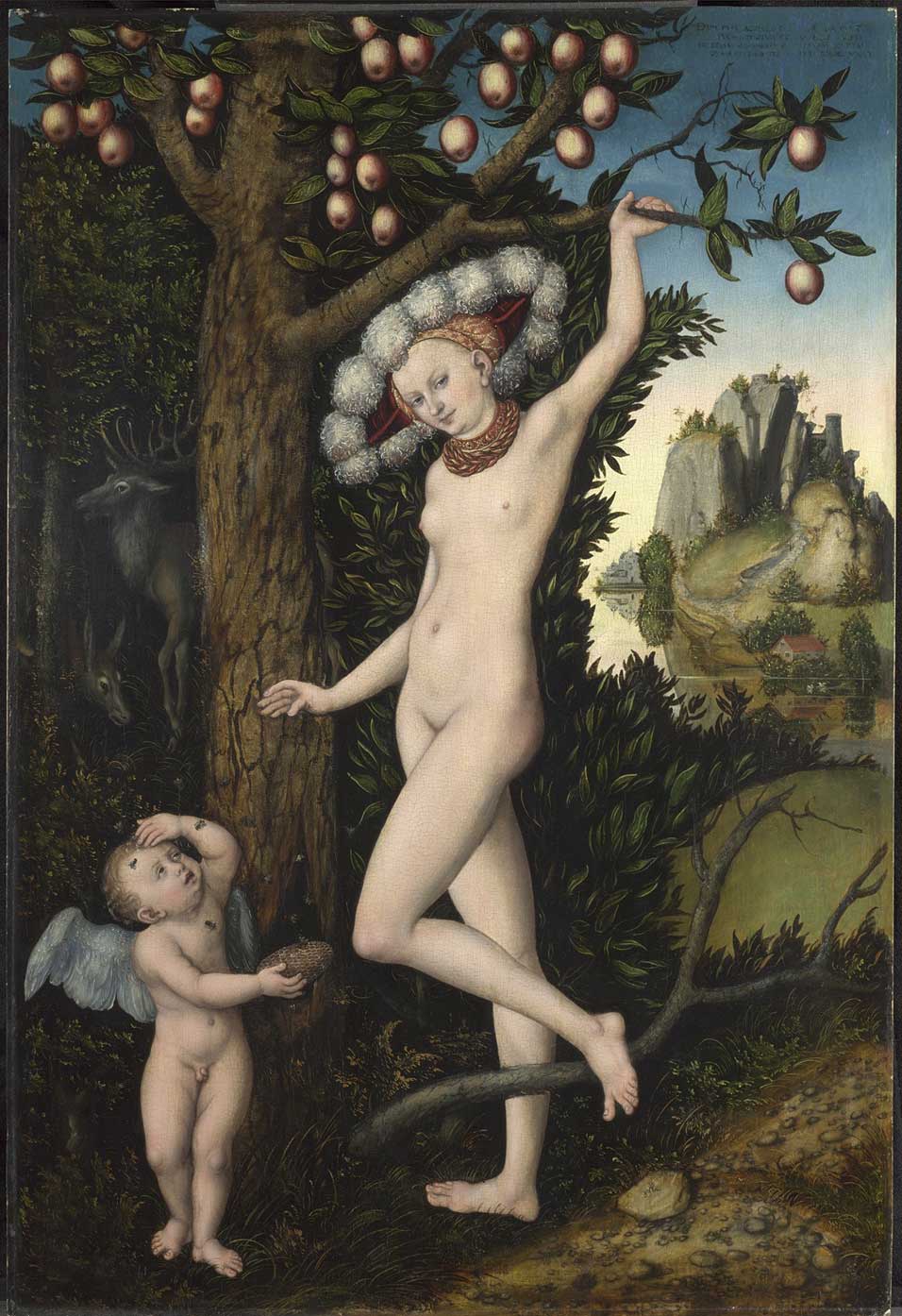 Cupid Complaining to Venus by Lucus Cranach the Elder. About 1525. The meddlesome sprite has been stung after breaking into a hive and now has the gall to go crying to his mommy. Life’s pleasure is mixed with pain goes the moral. Looks to me like Cranach got his honey cake and ate it, too.