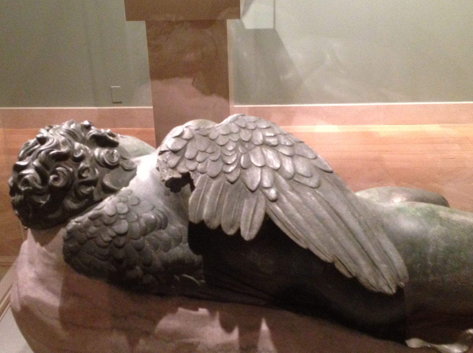 So what is he doing here, besides it being winter still and hard to get living content out there in the world? Those wings, of course. This Eros is dated 3rd to 2nd century BC. The rendering of the wings is good, relatively life-like, and, of course, utterly absurd. I mean this in the practical sense. No baby — much less a bronze one! — would ever get off the ground with those wings. Most birds are extremely light: a blackpoll warbler adds up to half an ounce; a big raptor like a bald eagle may weigh as much as 10 pounds, and, not inconsequently, has a 6-foot-plus wingspan. The human desire to fly — surely it started with marveling at the flight of birds — would have to wait technological ability.