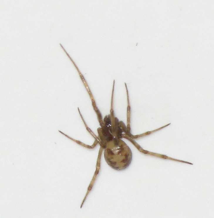 An American House Spider (I think), Parasteatoda tepidariorum. I got close with the camera and somehow brushed a line of silk, so that when I moved away, I inadvertently pulled the spider with me: it danced like a tiny puppet at the end of that invisible line. Sorry! And then I noticed, that being in a tub, which is designed to shed water, it was having some difficulty in getting out. So I used a small scallop shell, typical bathroom equipment in this house, to gently move it. As some of the guides noted, it played dead for a while but was soon on its way. Wherever it wanted to go.