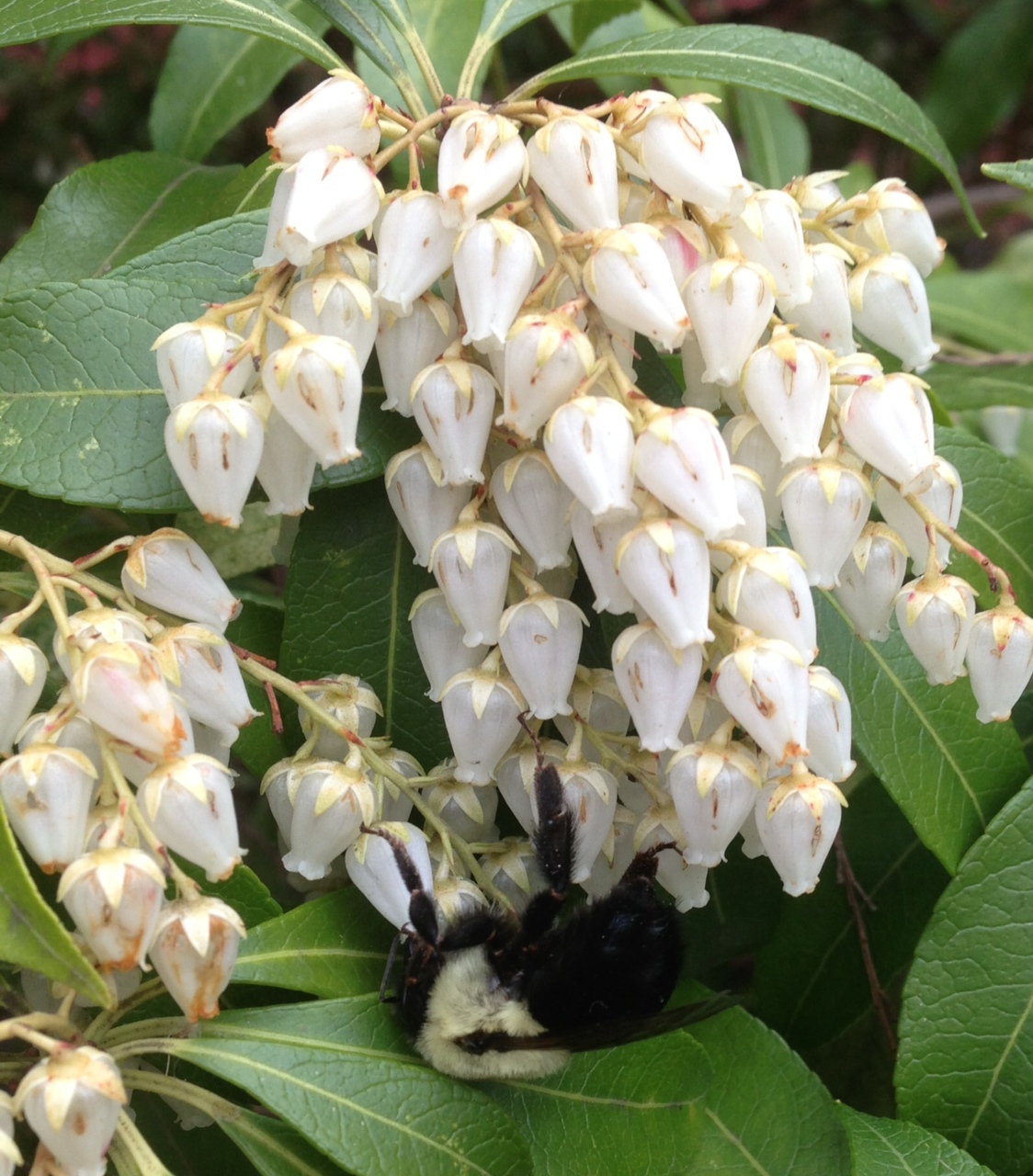 By which I mean a chilly morning, according to bumble bee standards. Burly little things, they warm themselves up by muscular action on chilly spring mornings, getting the jump on other pollinators who are smaller and more solar-powered. This looks like a Bombus impatiens, which, for all I know, is how you look on Monday mornings, too.
