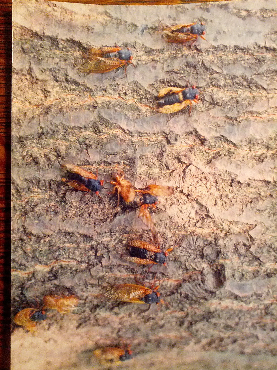 This is a photograph (check it out, kids: silver-coated paper; ask your parents about this technology invented by Cro-Magnon) from a friend who was living in Missouri in 1998, when the stars aligned both a 13-year AND a 17-year brood emergence in the region. (Said friend is still traumatized and asks that his name not be used.)