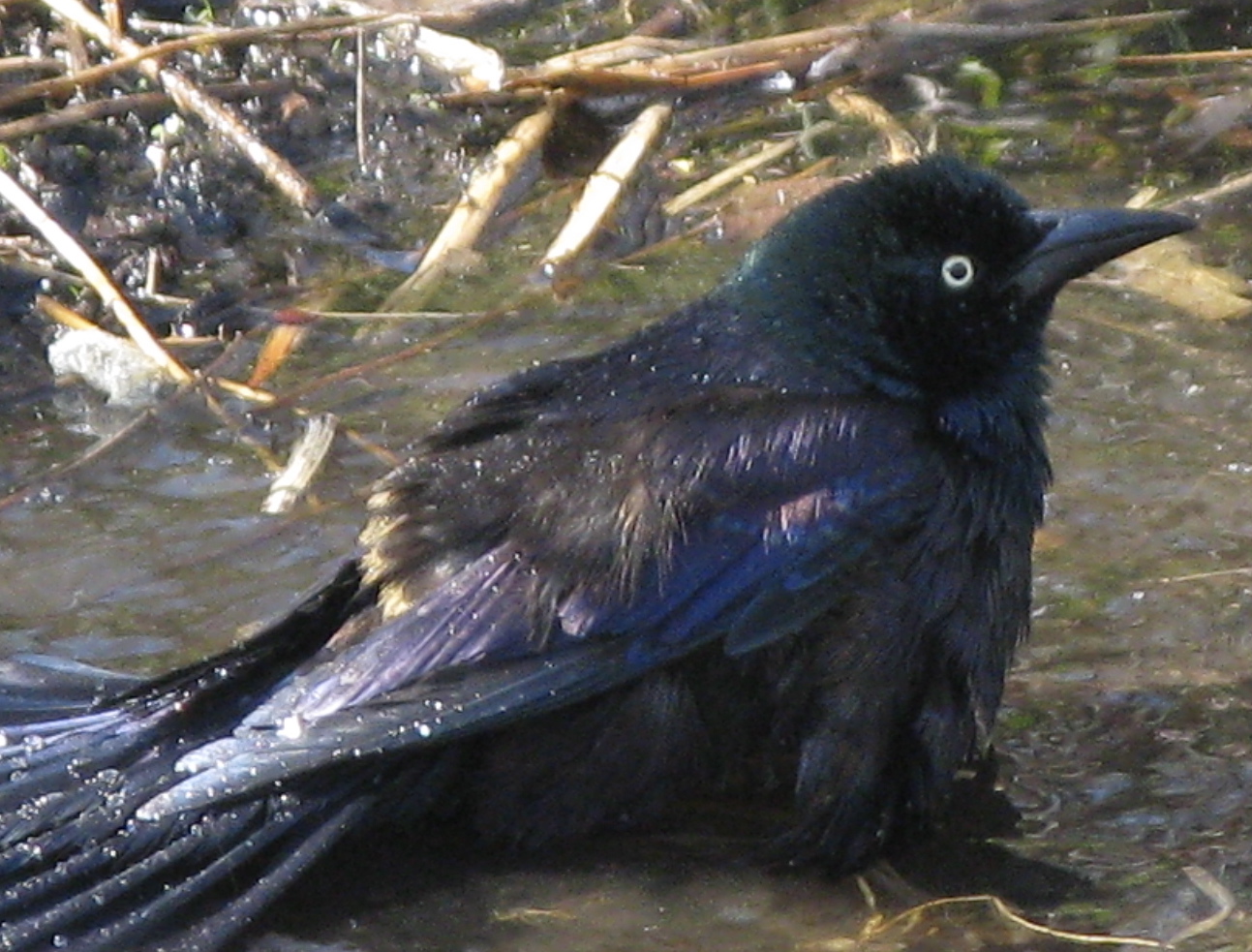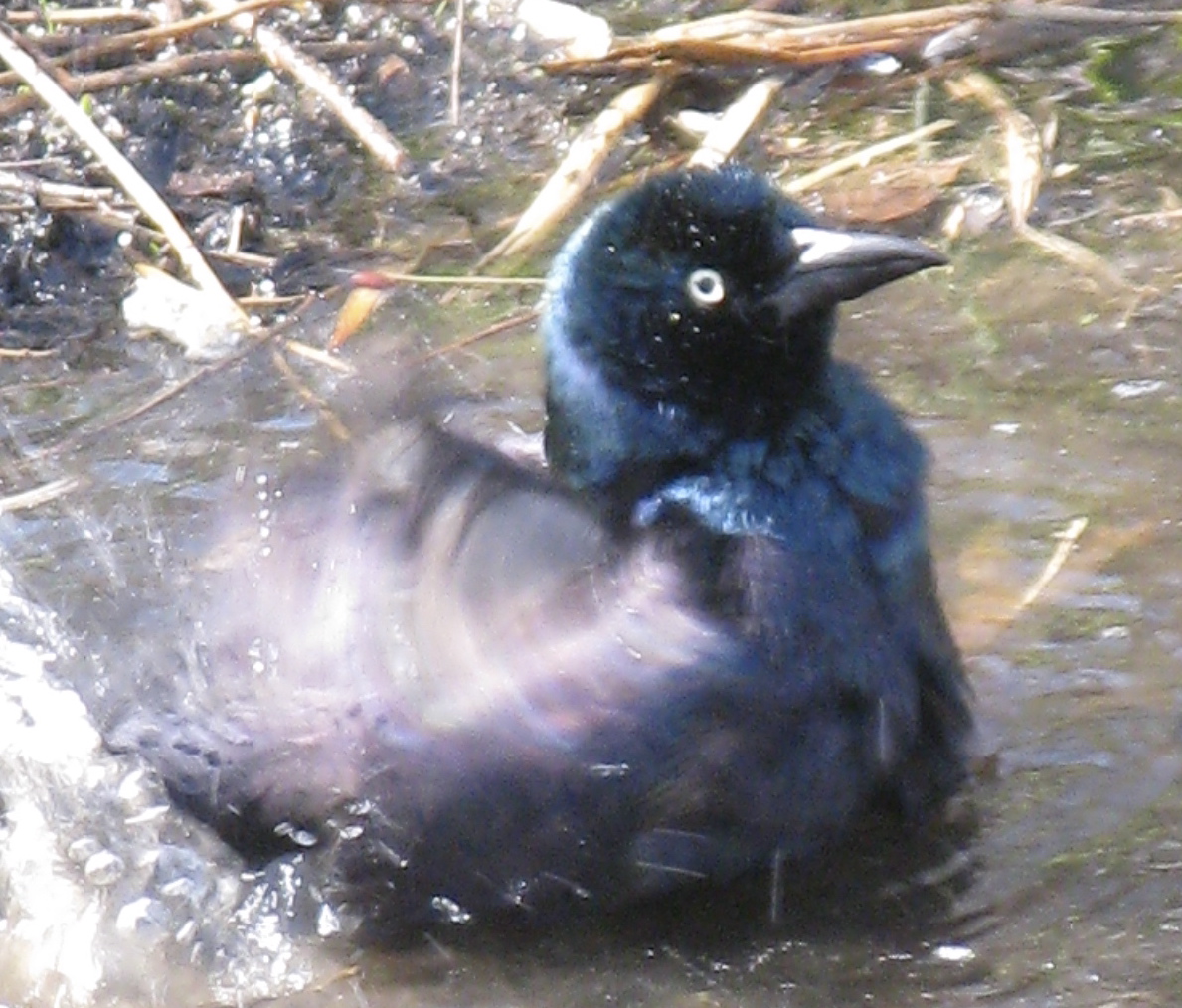 This Common Grackle (Quiscalus quiscula) was bathing in Brooklyn Bridge Park the other day.