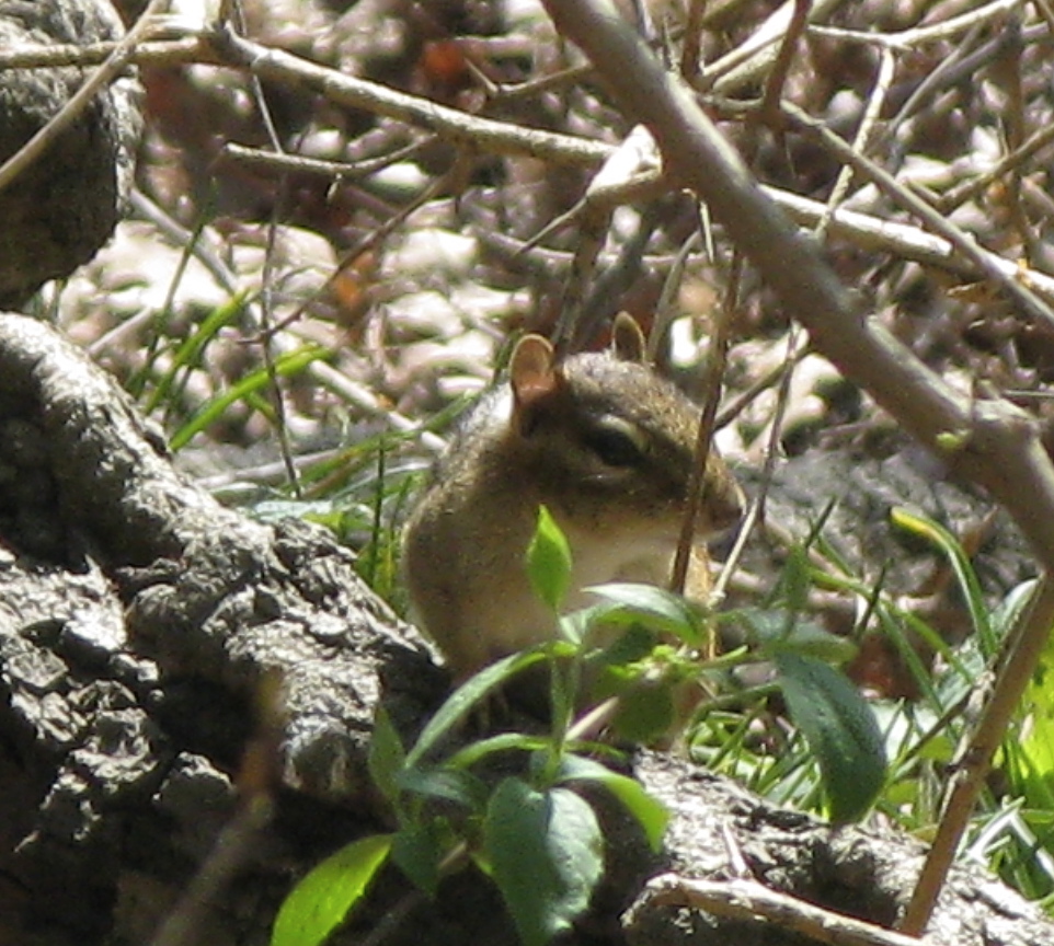 I have chipmunks in my backyard in suburbia — mostly seen under the bird feeder — and at my cabin in the Ozarks — mostly seen under the bird feeder.