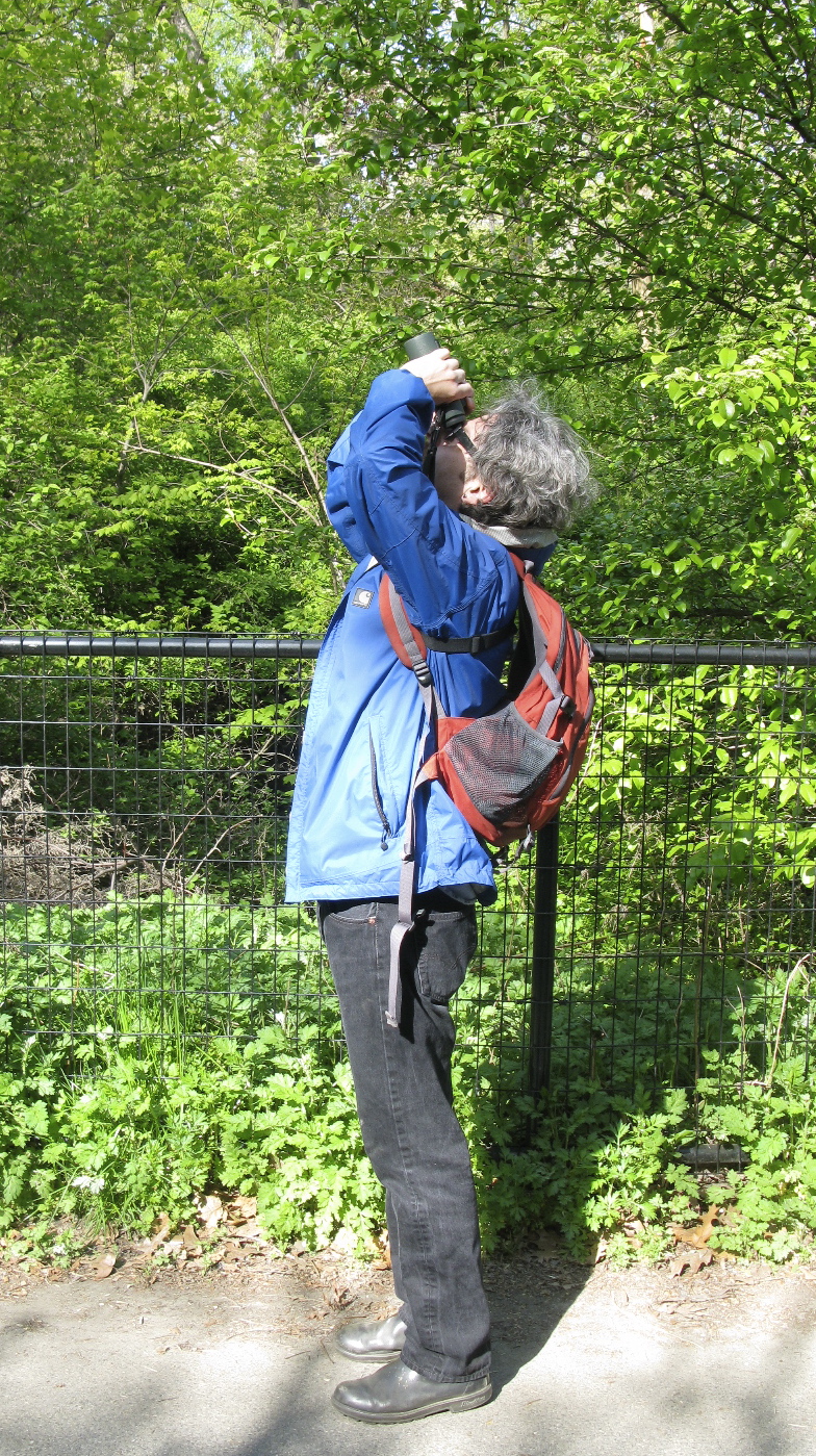 Look, up in the sky! It’s a bird, it’s… actually, yes, it is a bird, a small darting thing high high high up in leafy elm. Perhaps a flame-throated Blackburnian, a sky-bringing Cerulean, a red-faced Cape May. Warbler season is upon us, and, even though, as of this writing (Sunday evening), the weather is particularly uncooperative, blocking north-bound winds and hence north-bound migrants, one must keep in shape for the inevitable fallout. But looking nearly straight up like this is murder on the spine. “Warbler neck” is what we call it. A surefire solution would be to lay on the ground, excepting, of course, this would limit the field of view and increase your chances of being stepped on.