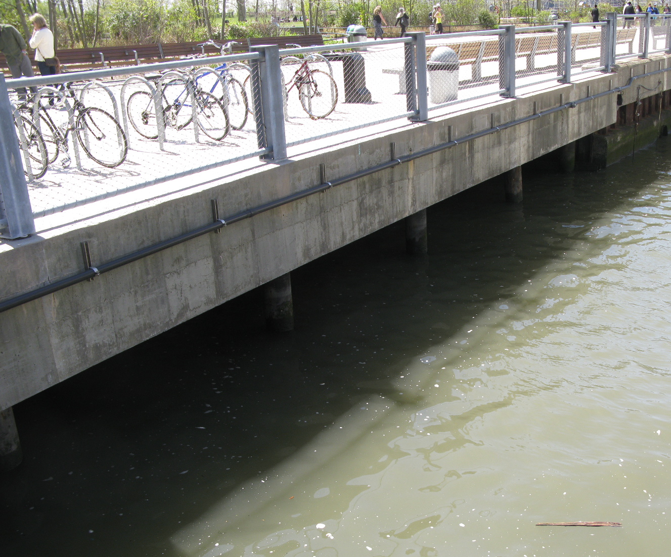 Down underneath Pier One at Brooklyn Bridge Park is another place Barn Swallows nest. This is right next to Barge Music, where you may see the birds perching on their tiny feet on the rusting hull.