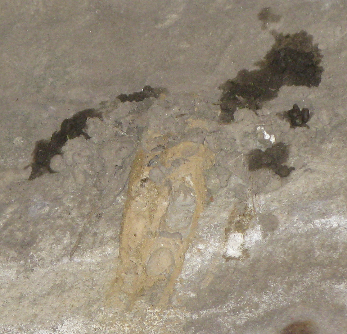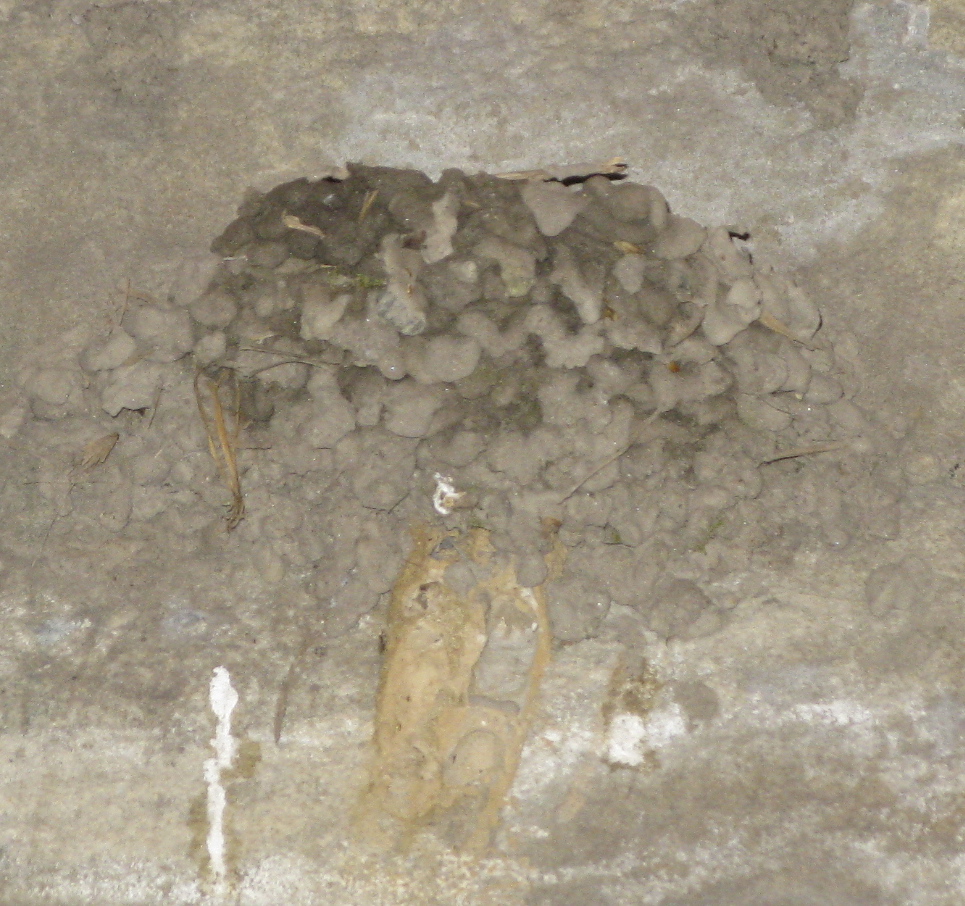 Seven days later. The darker portion is fresher mud, still damp. This shot from almost directly underneath, to show how far it sticks out from the wall.