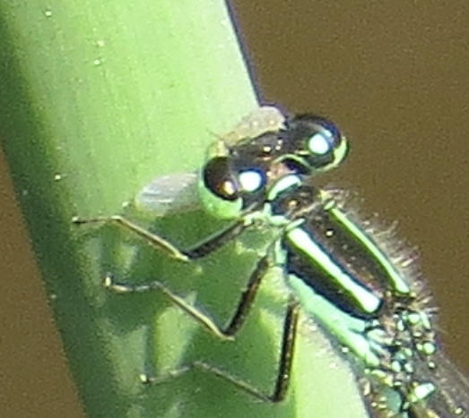 Note that it is munching on something with wings. The widely separated eyes are another marker of the damselflies.