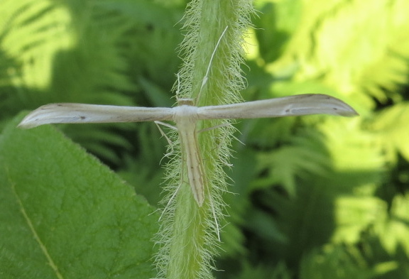 Spotted by Myra, park volunteer and reader of this blog. Looks like a Morning Glory Plume Moth (Emmelina monodactyla) resting after a long night of eating Joe-Pye Weed.