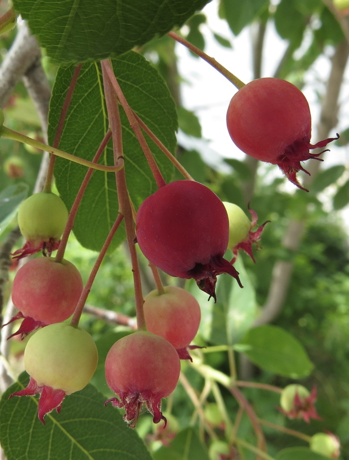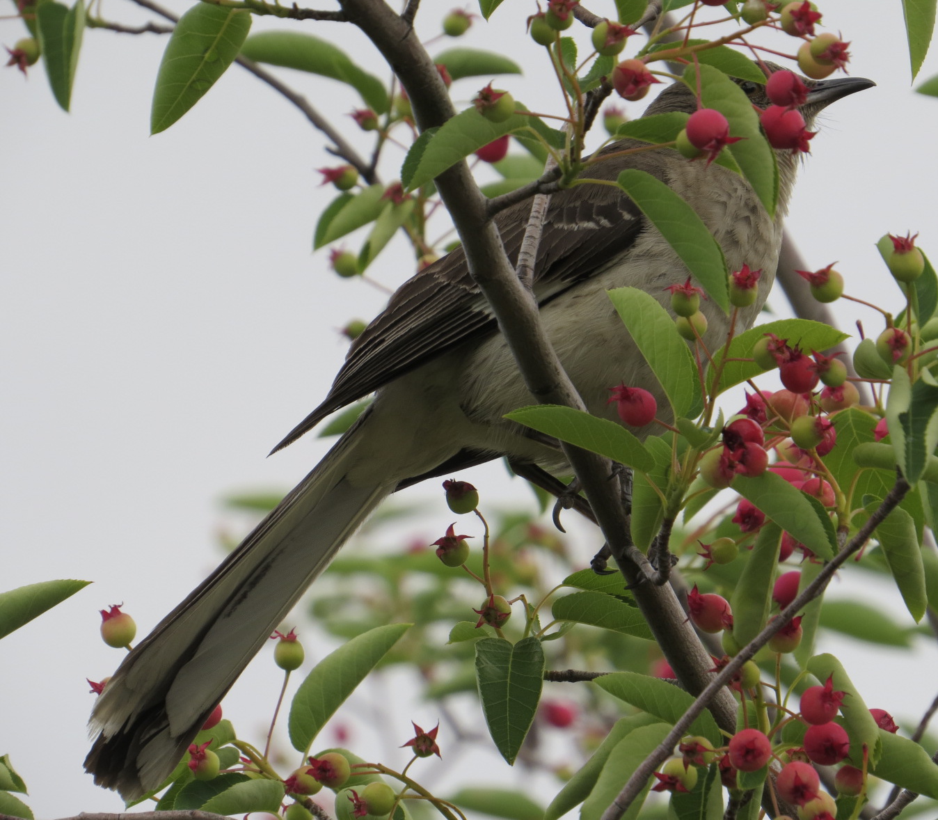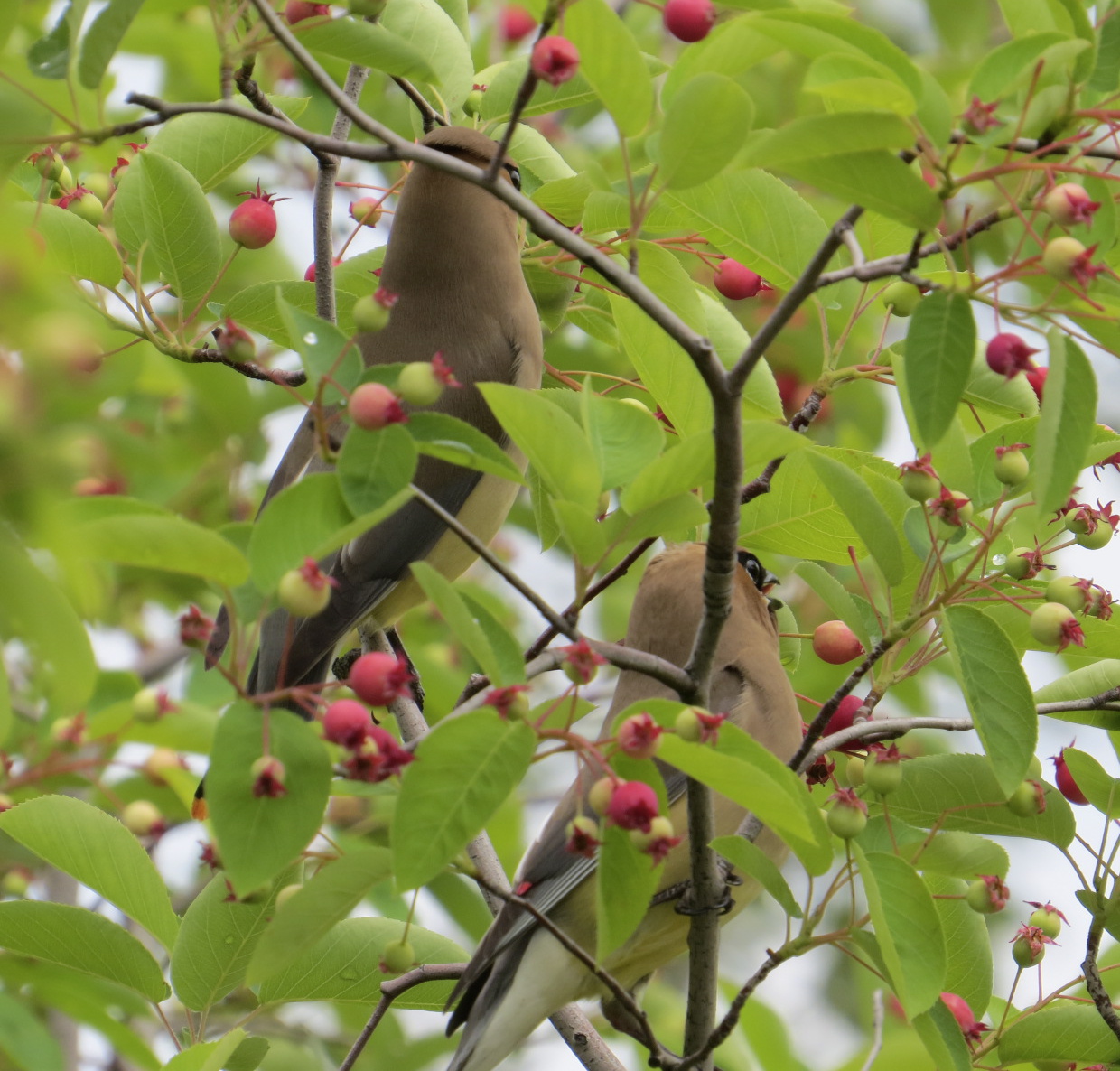 The Juneberries (Amelanchier sp.) are nearly ripe, and that means the birds are starting to devour them.