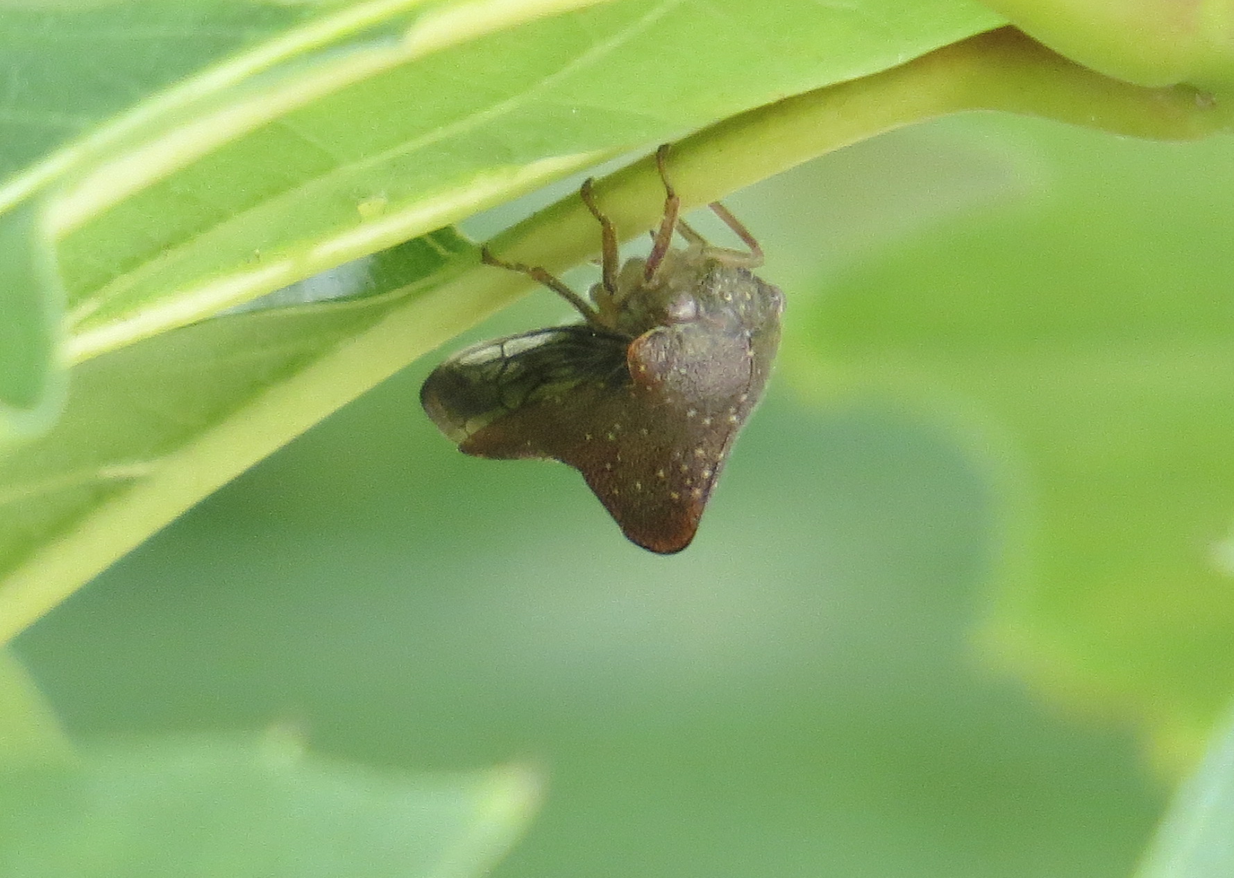 One of the thorn-like treehoppers, perhaps the Oak Treehopper (Platycotis vittata), since it looks a little like one of those, sans the hornlike crest some of them grow, and was on an oak. These feed on sap. As one of the bugs of the order Hemiptera, they are suckers, not chewers.