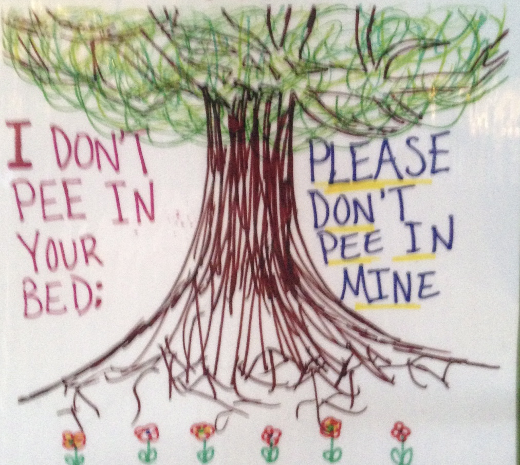 Dog pee kills trees, so what this kid said.