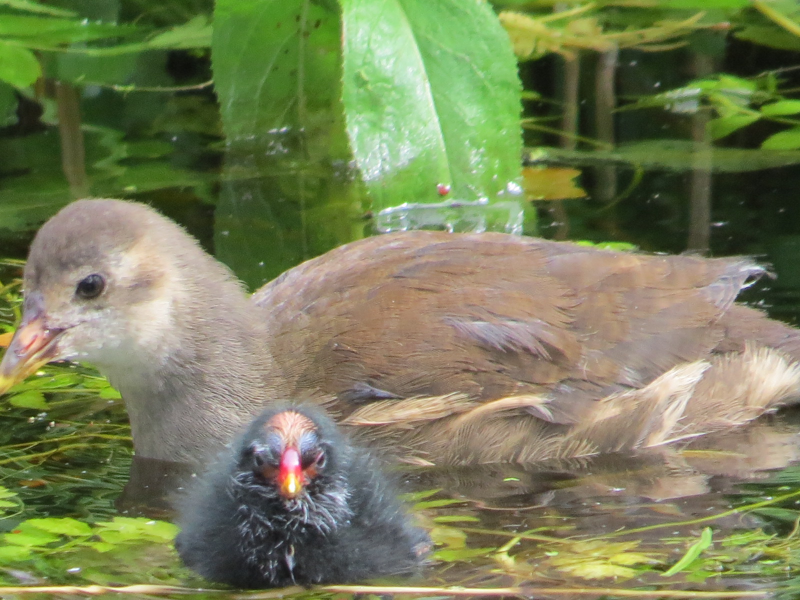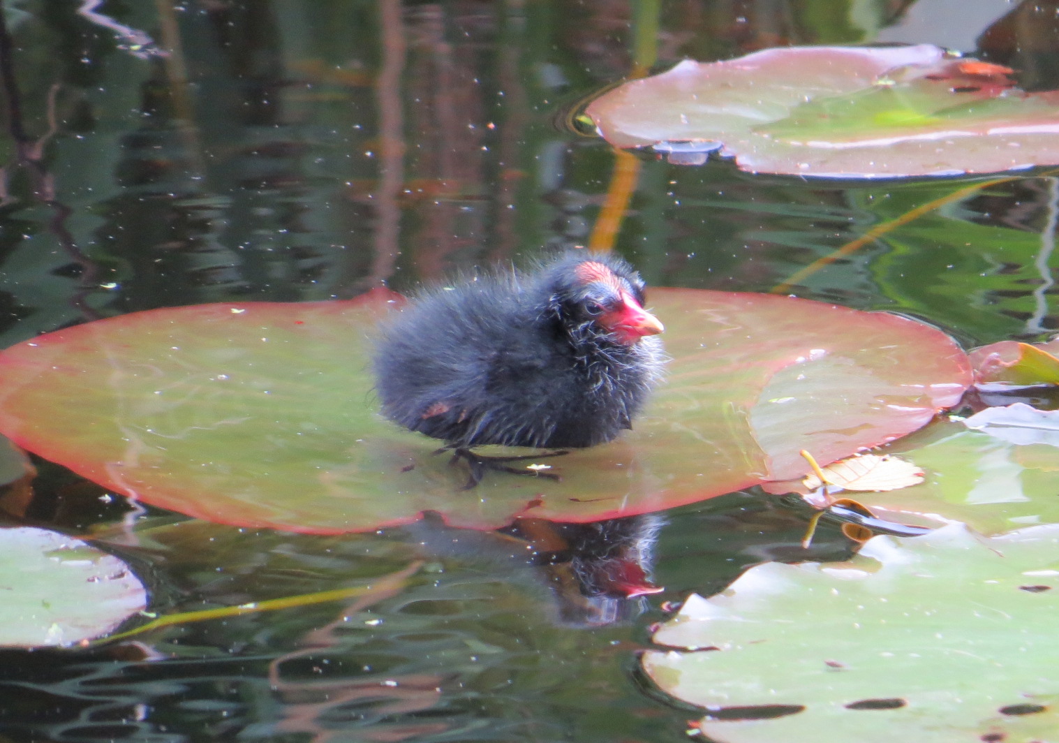 A very fresh Moorhen chick (Gallinula chloropus) in the garden of the Natural History Museum.
