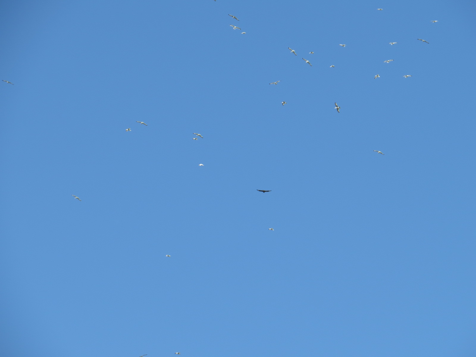 A high maelstrom of gulls swirling above the moor, with another Buzzard in the mix.