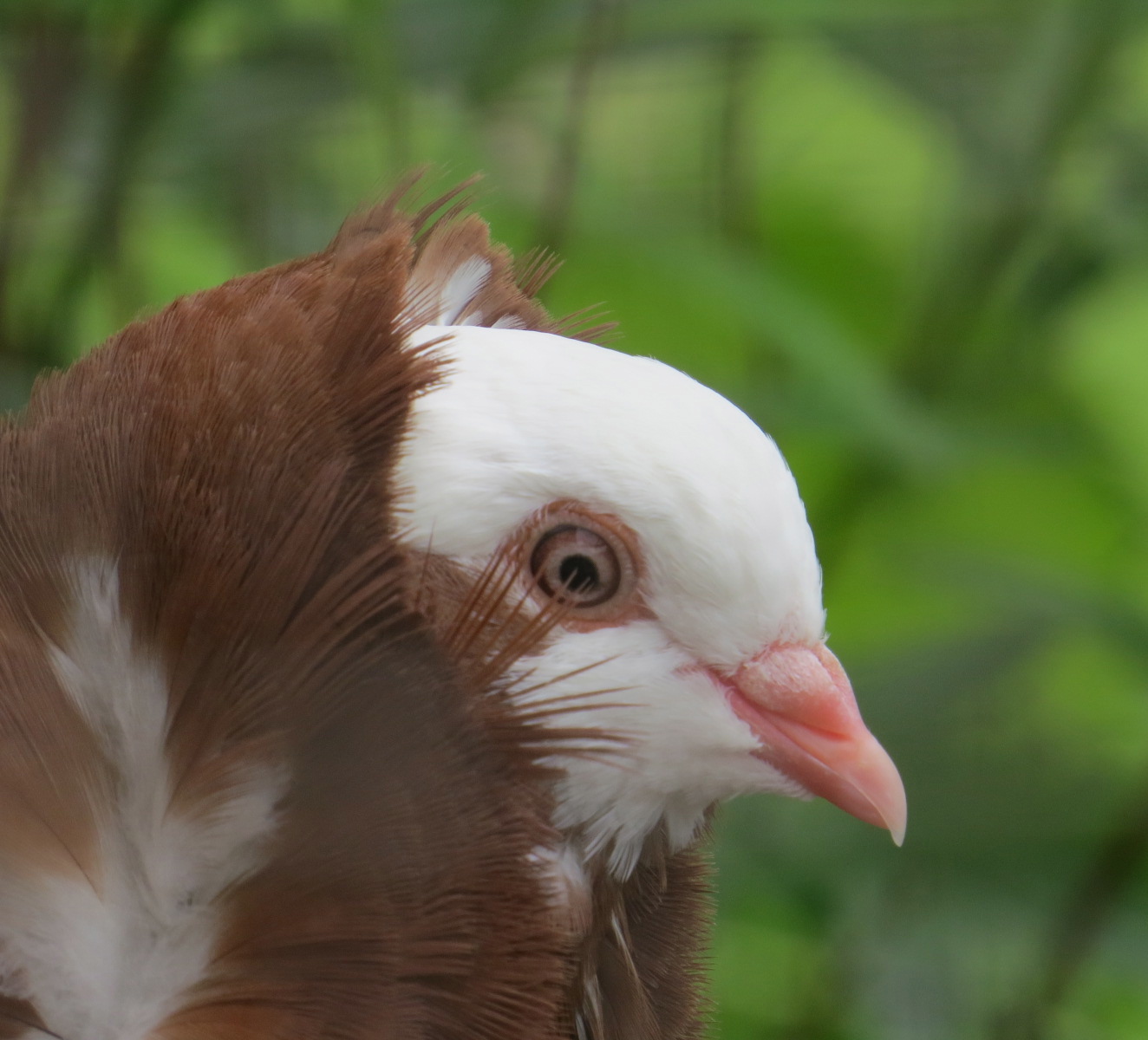 At the Totnes Rare Breeds Farm, while I was waiting for a steam train I found this Old Dutch Capuchine Pigeon, a fancy breed once thought extinct.