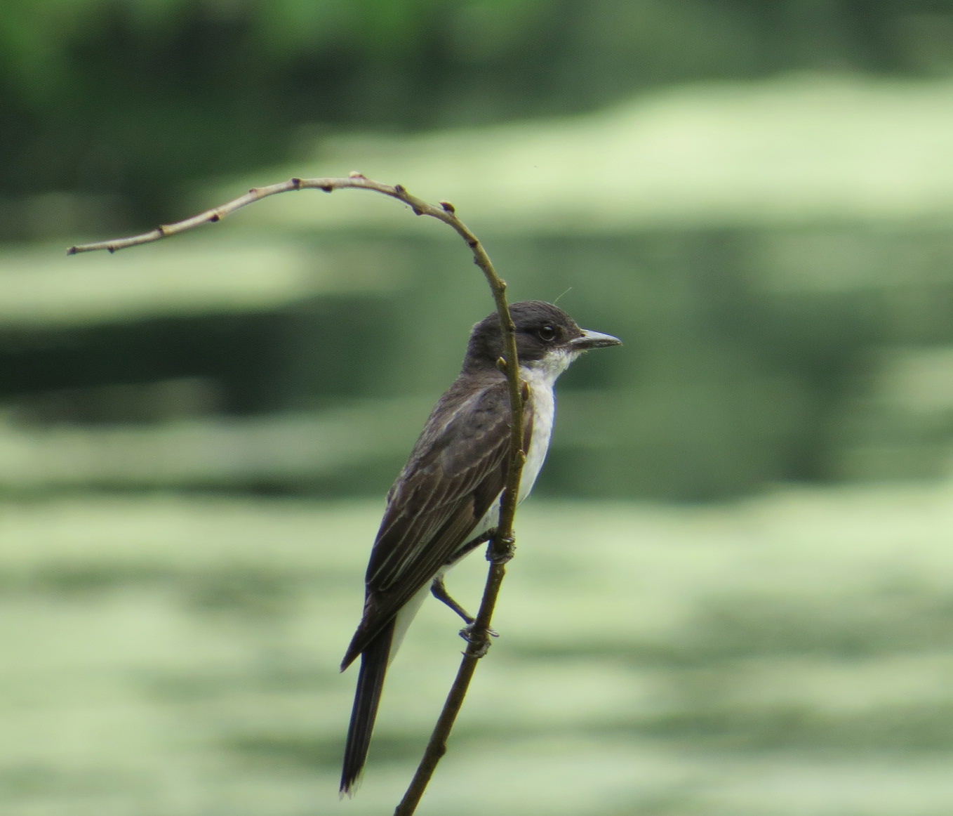 Northern Kingbirds often harass crows and birds of prey beside waterways. This species is the only North American bird with a tail uniformly edged in white (so I have read).