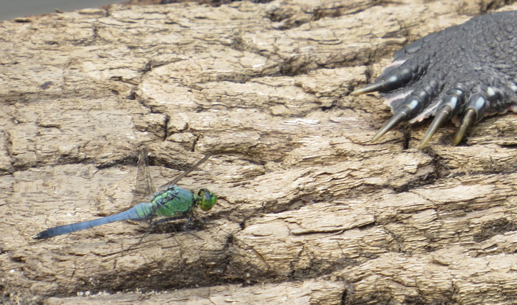 Well, probably not, as this is the turtle’s back leg and the reptile may not even be aware of the Pondhawk’s presence. And while Pondhawks are certainly serious contenders in their weight class….