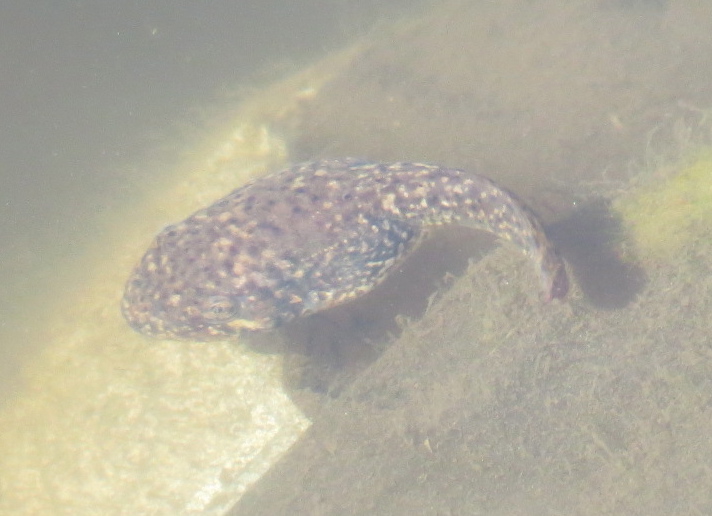 Bulllfrog tadpoles (Rana catesbeiana) were still to be seen swimming. A single Common Green Darner was flying. There was also a bee of some kind passing by.