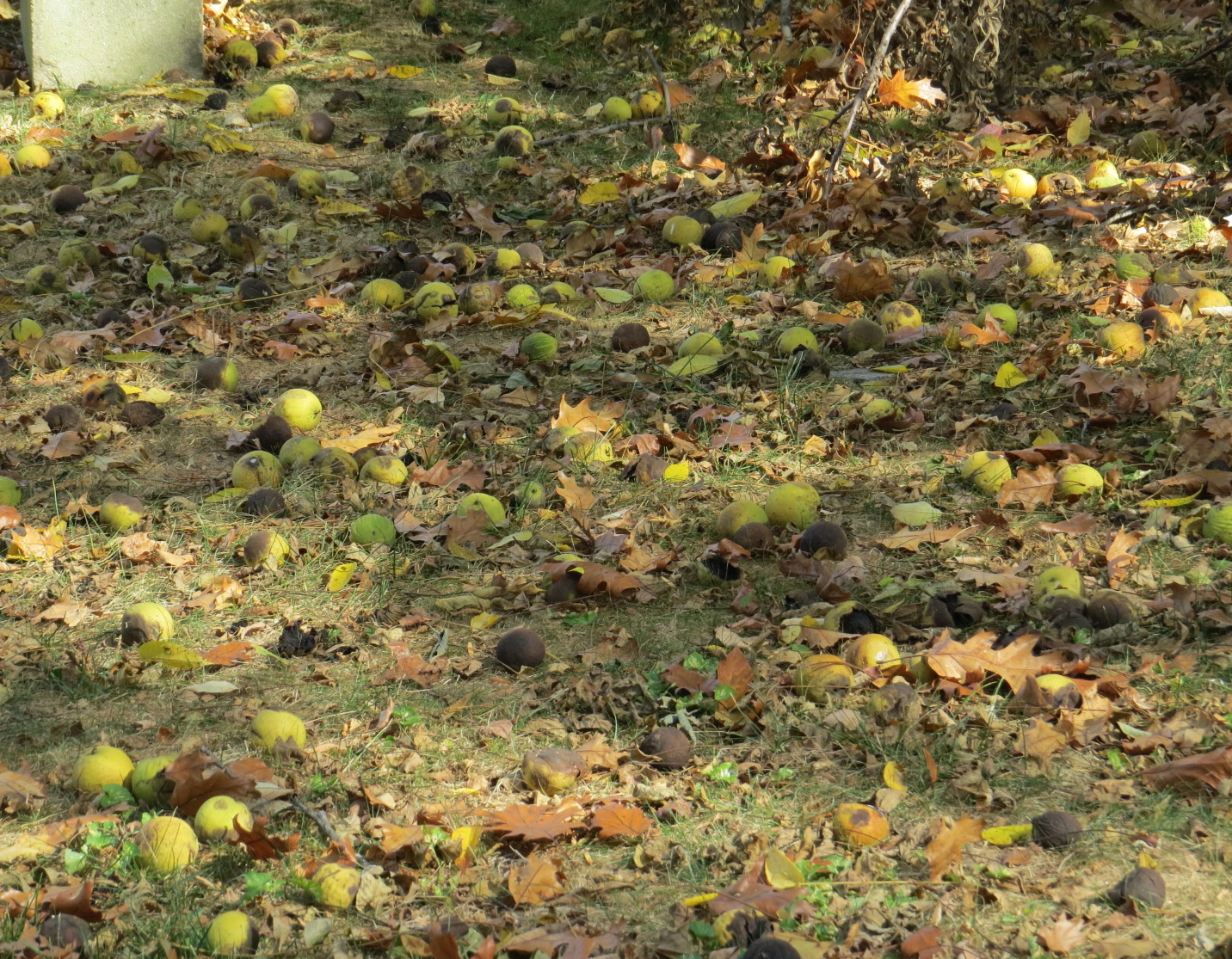 A field of Black Walnuts (Juglans nigra): these were thudderdudduding down in the wind; don’t stand under the walnut tree with anybody, not even yourself.