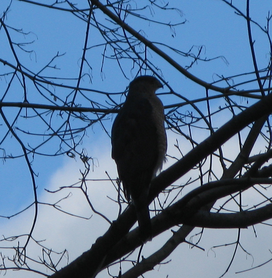 This Cooper’s Hawk was probably keeping an eye on the local bird-feeders. A Pileated Woodpecker’s loud call made us turn around in time to see the flying dinosaur land high up in a tree. Another juvenile Baldie was seen high over the “Crossing,” a bicycle path that parallels Route 9 over the mouth of the Croton River and runs by some of the tallest Pragmites I’ve ever seen (we used this to return to the Croton Harmon station).
