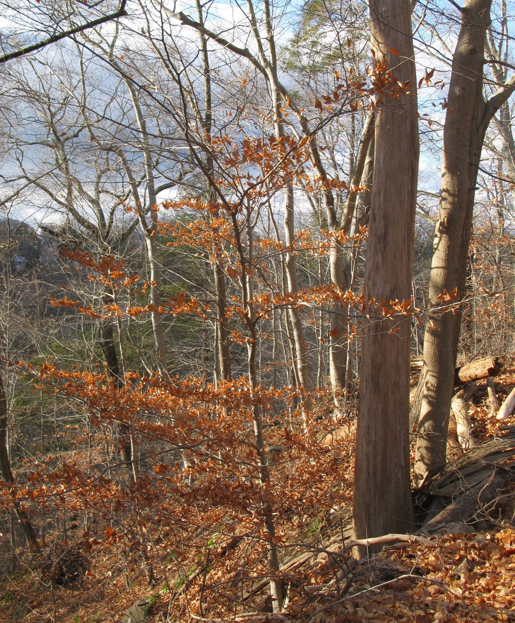 These tall thin trees tell a tale of an area that was once logged out, like virtually all of the region.