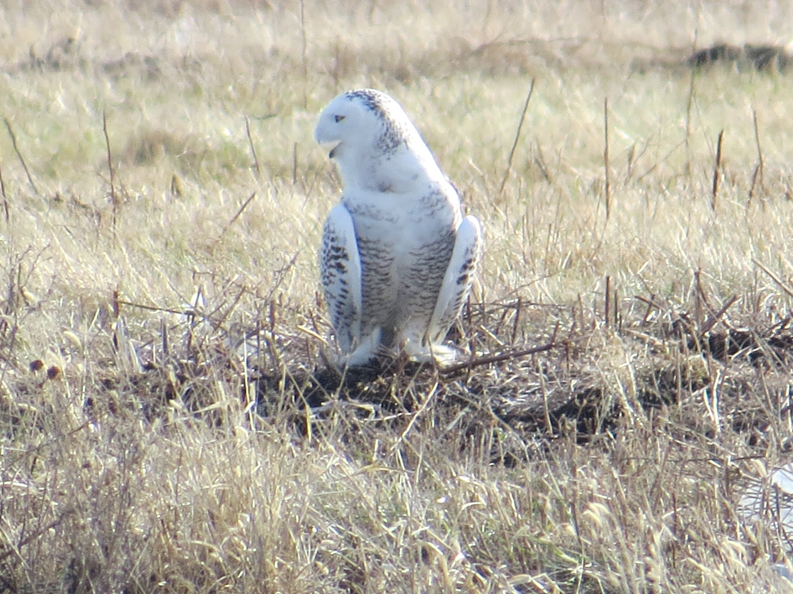 Why are they here? This Newfoundlander, who has counted 100s of Snowys this year, argues that it was a particularly fecund year for the birds; when lemmings, their main food item during breeding season, are numerous, Snowys can produced up to nine eggs in the short breeding season. It’s boom and bust. Particularly boomy boom years cause the birds to spread out, there are too many for the local carrying capacity, and mature birds will defend their territory against usurpers. The vast majority of birds down here are youngsters. Here’s more evidence of this, along with some wonderful footage of a feisty bird aching for freedom, from the guy in charge of capturing the owls at Logan airport and then releasing them elsewhere.