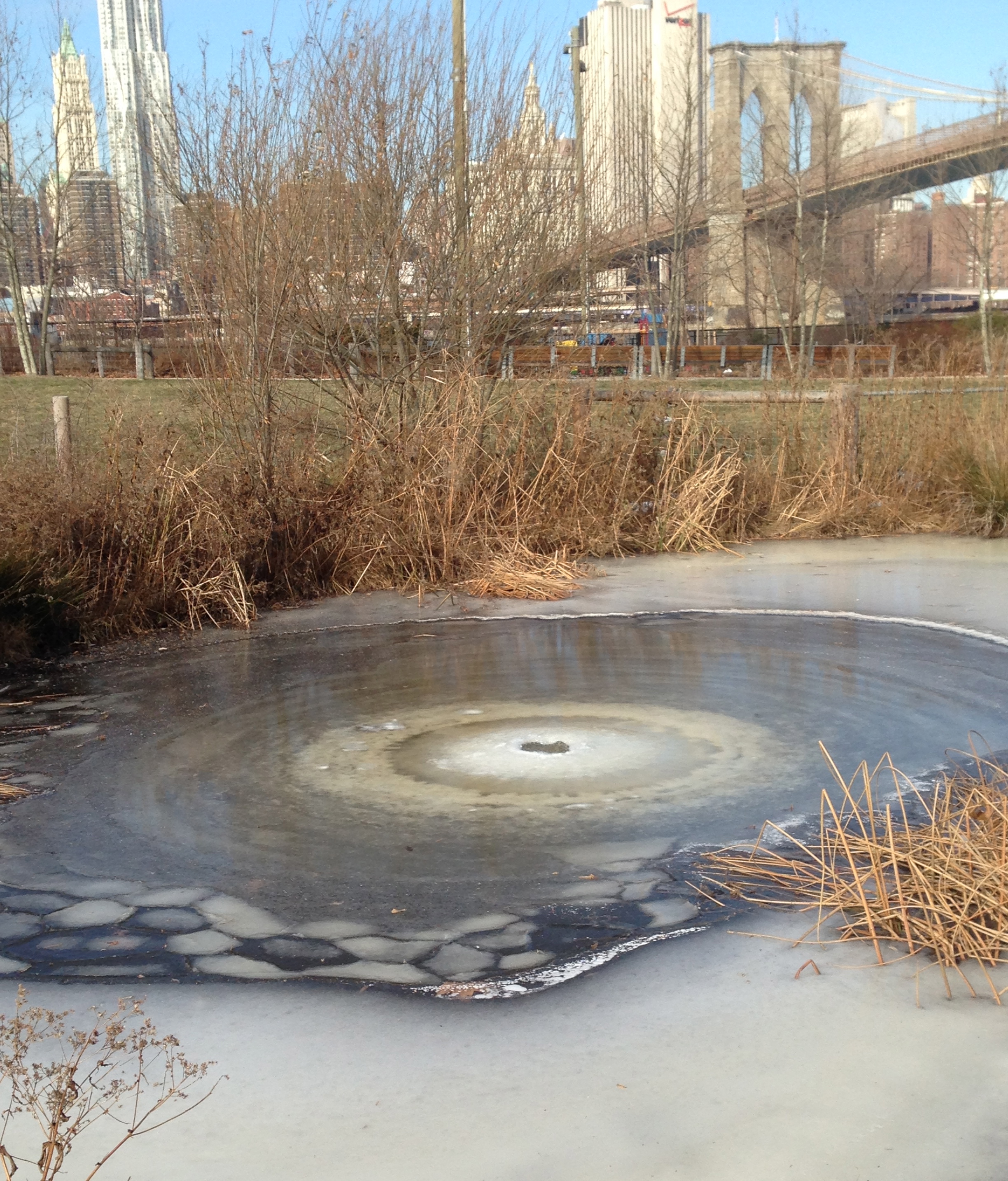 I love the circularity of this hole in the pool on Pier One. The bubbler, keeping oxygen in the pool after Sandy ravaged the Park’s whole watering system, is maintaining it against the freeze. Convenient: accessible fresh water is the most important thing for wildlife in this kind of weather.
