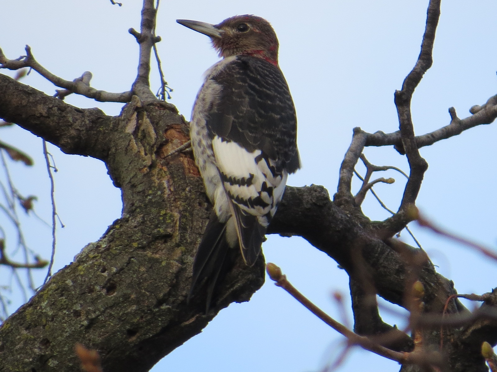 An uncommon visitor to Brooklyn, this Red-headed Woodpecker (Melanerpes erythrocephalus) has been hanging out in Green-Wood Cemetery this winter. This is a juvenile bird, on its way to getting the bright red head of an adult. The adult bird looks like a flag: red, black, & white.