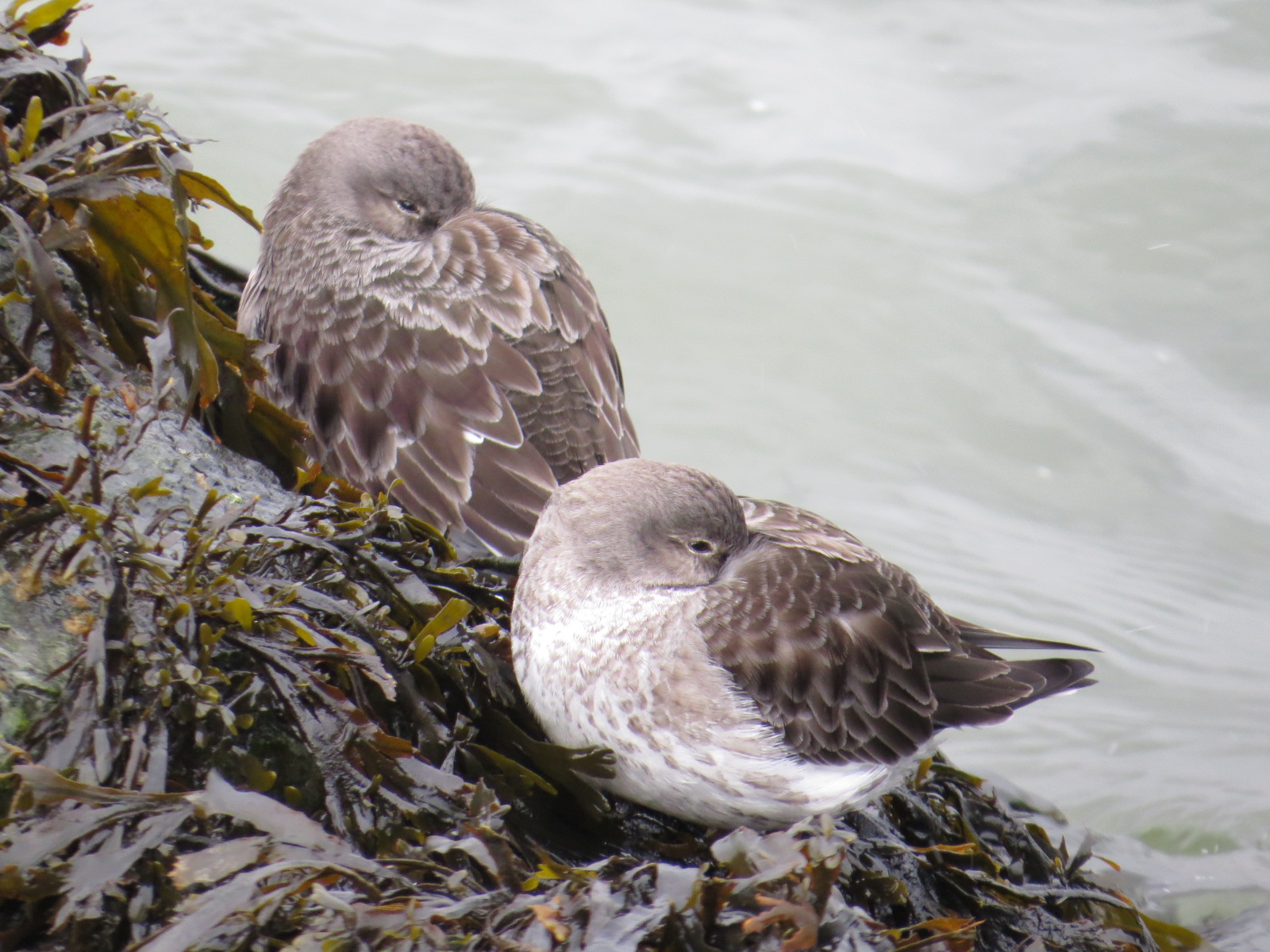 And when I say “wave-sloushed,” I mean it. The rocks pile upwards, but the birds are found down near the water, amidst the seaweed and the food. Waves are constantly replenishing the mini-ecology of the seaweedy rocks.