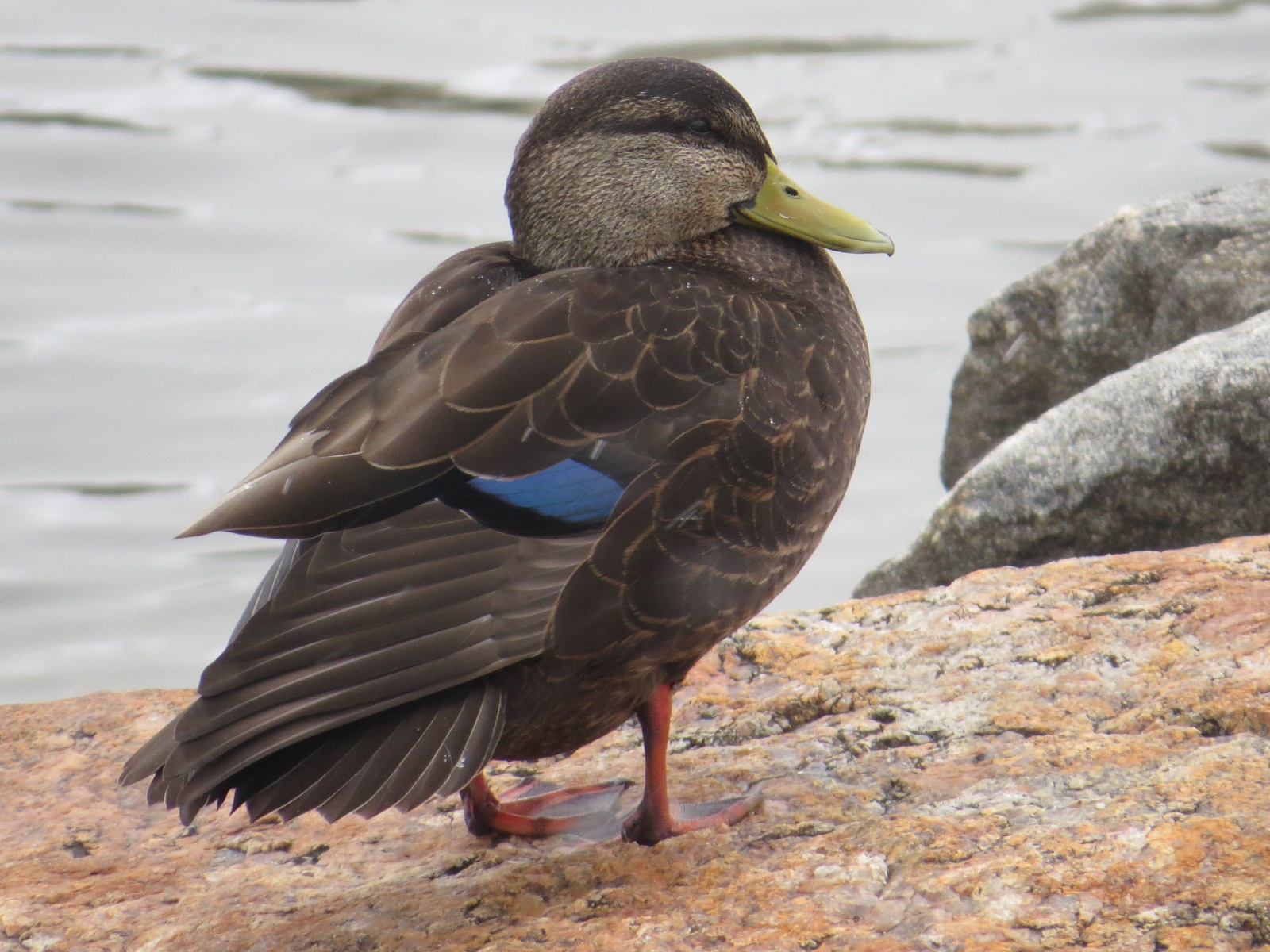 The world is far from monochrome on a snowy day. Note the bill, stained with Sumac.