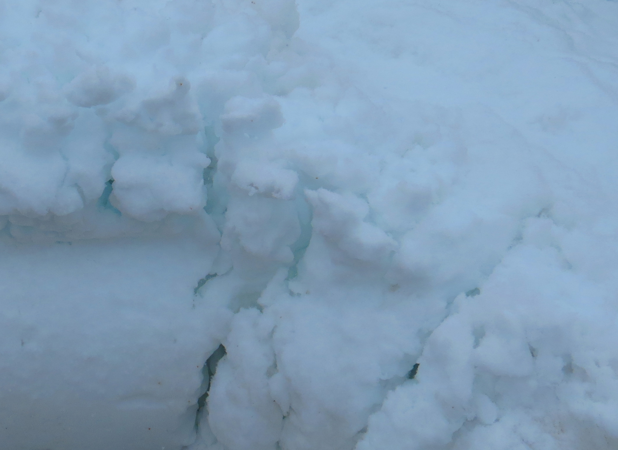 One knee-high pile of older snow, plowed into a corner, was quite fissured. From within these fissures there gleamed these delicious hints of blue. I stood staring into that color for the longest time, until my black jeans and black coat were splattered with flakes like paint. (Almost everyone else in the park with me was running; no sense in hurrying to that finishing line, I aways say.)